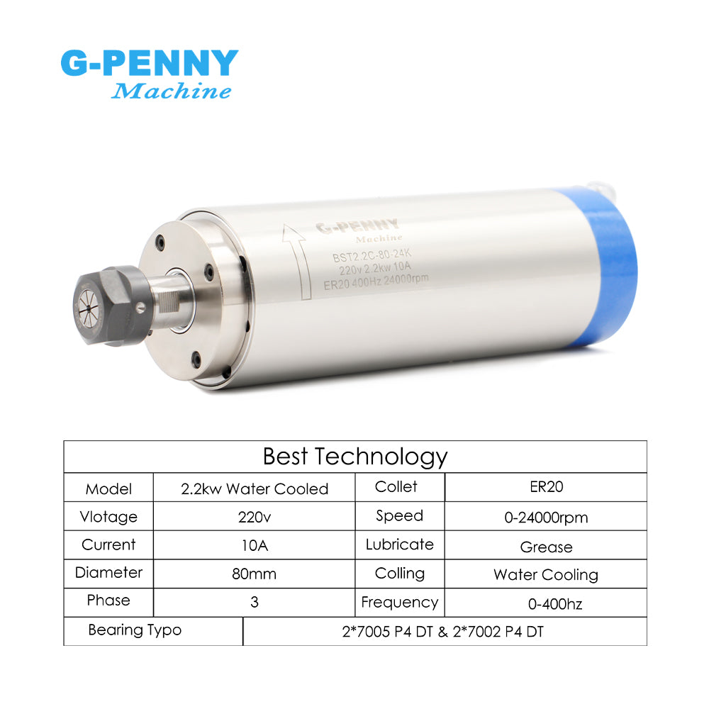 G-Penny 2.2KW ER20 D80 110V/220V Water cooled spindle motor kit & Inverter & brcaket & water pump